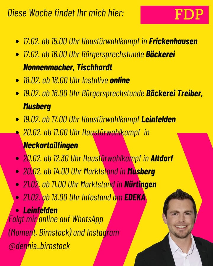 Eine neue Woche beginnt. Und hiermit kommen auch meine neuen Vor-Ort-Termine. Genießt die letzten Faschingstage, vielleicht sehe ich den ein oder anderen von Euch auch bei einem meiner Stände. Im Übrigen, wer am Dienstag, 17.02. zur Bürgersprechstunde in die Bäckerei Nonnenmacher verkleidet kommt, bekommt von mir einen Berliner ;) Wir sehen uns. #bürgersprechstunde #narren #ltwbw