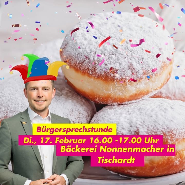 Morgen ist die nächste Bürgersprechstunde. Dieses Mal in Tischardt in der Bäckerei Nonnenmacher. Wer kommt verkleidet?